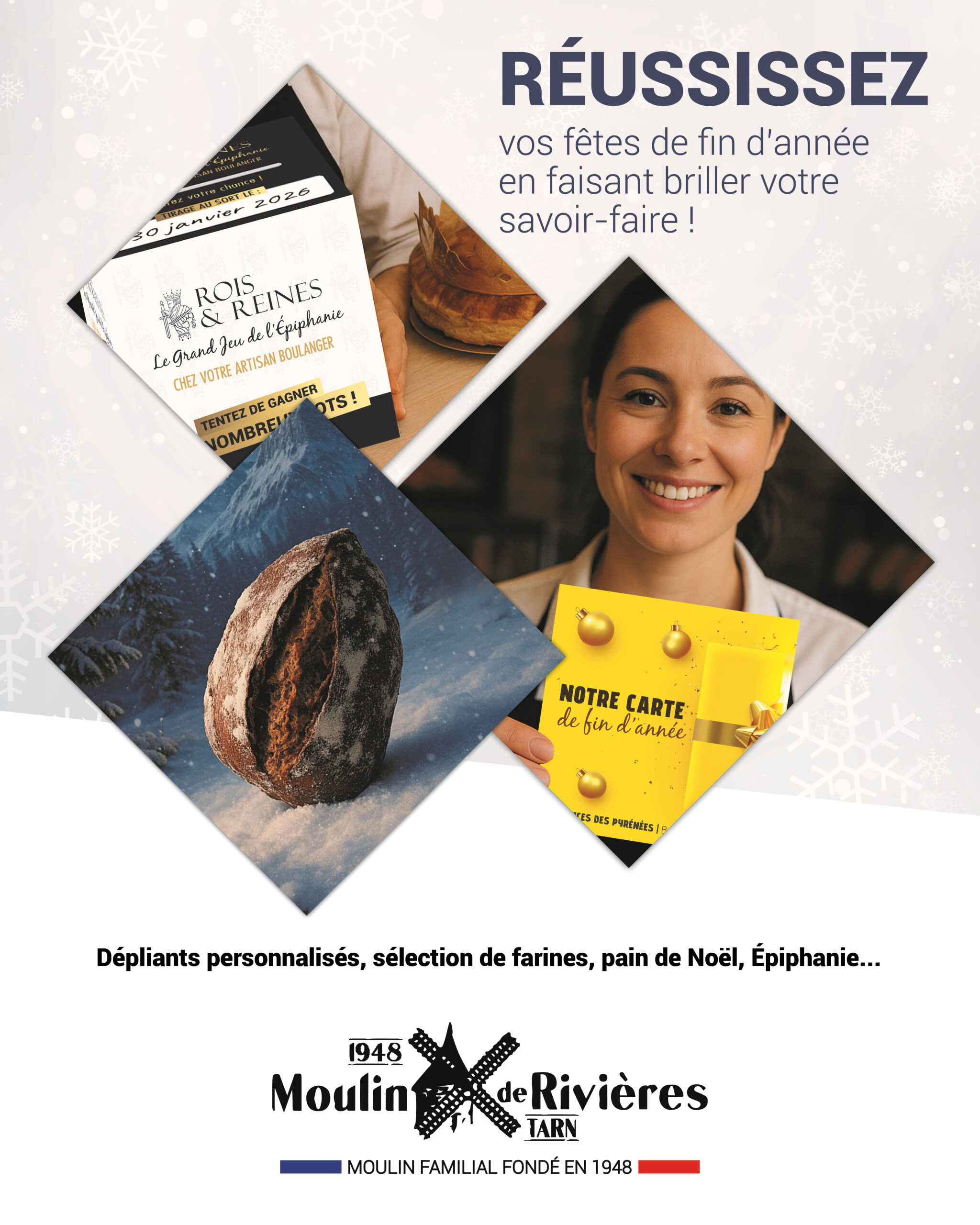 Une sélection de farines festives (Seigle Citron, Pruneaux Miel, Pain d’épices, Panettone…).